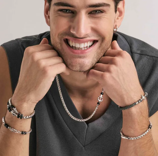 Armband der Kollektion Atlante Stones Edition aus 316/304er anallergischem Edelstahl, Cubic Zirkonia, Naturstein und Knoten Symbol. Gleiche Symbolik, aber mit 3 verschiedenen Natursteinen erhältlich: Entweder mit intensiv blauem Sodalith, schwarzem Achat mit seinem intensiven Farbton oder raffiniertem grauen Diaspro Stein. Wählen Sie den Stein aus, der Ihnen am besten gefällt!!