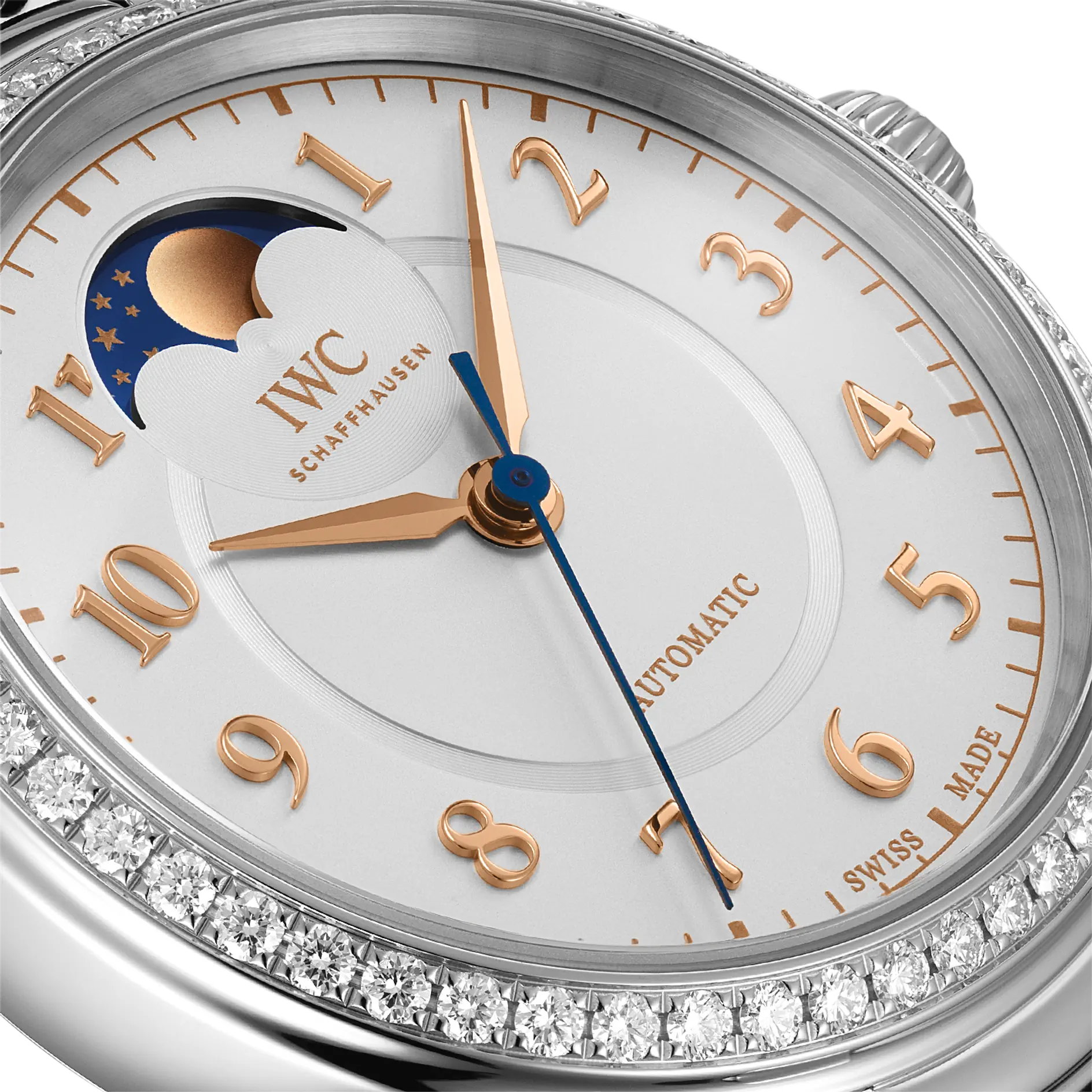 Der moderate Gehäusedurchmesser, Bandanstösse mit beweglichen Hörnern und die poetisch-verträumte Anzeige der Mondphase machen diese Uhr speziell für Damen attraktiv.