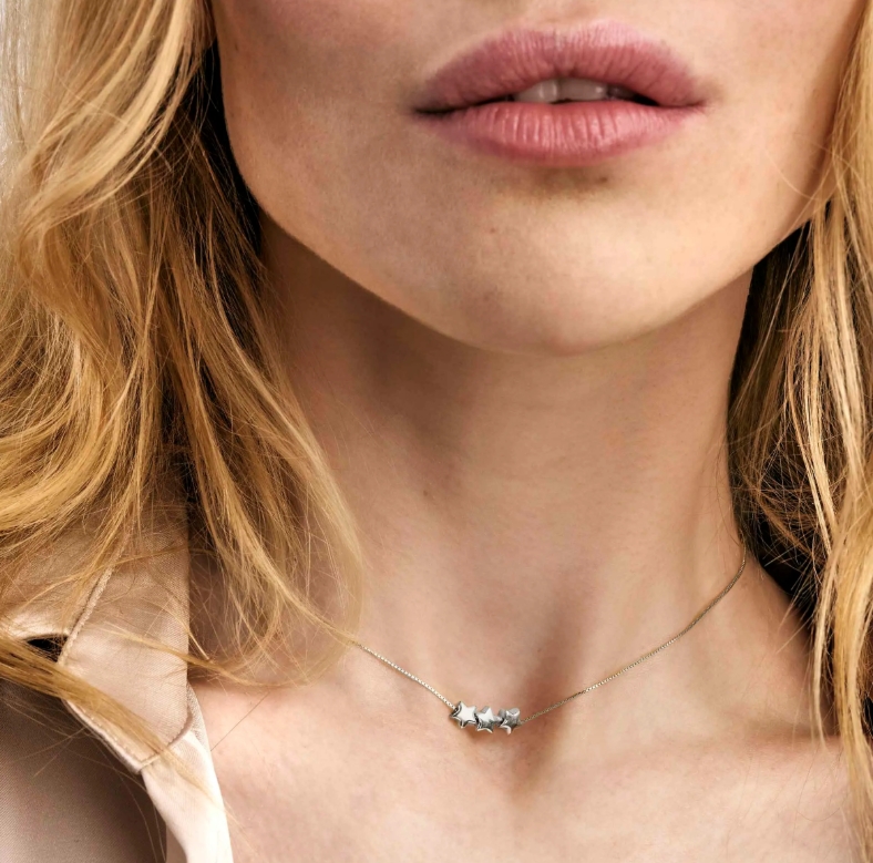Jeder Stern ist bei dieser Halskette minutiös eingesetzt und bringt Wünsche, Hoffnung und Träume zum Ausdruck, die uns jederzeit im Leben begleiten.