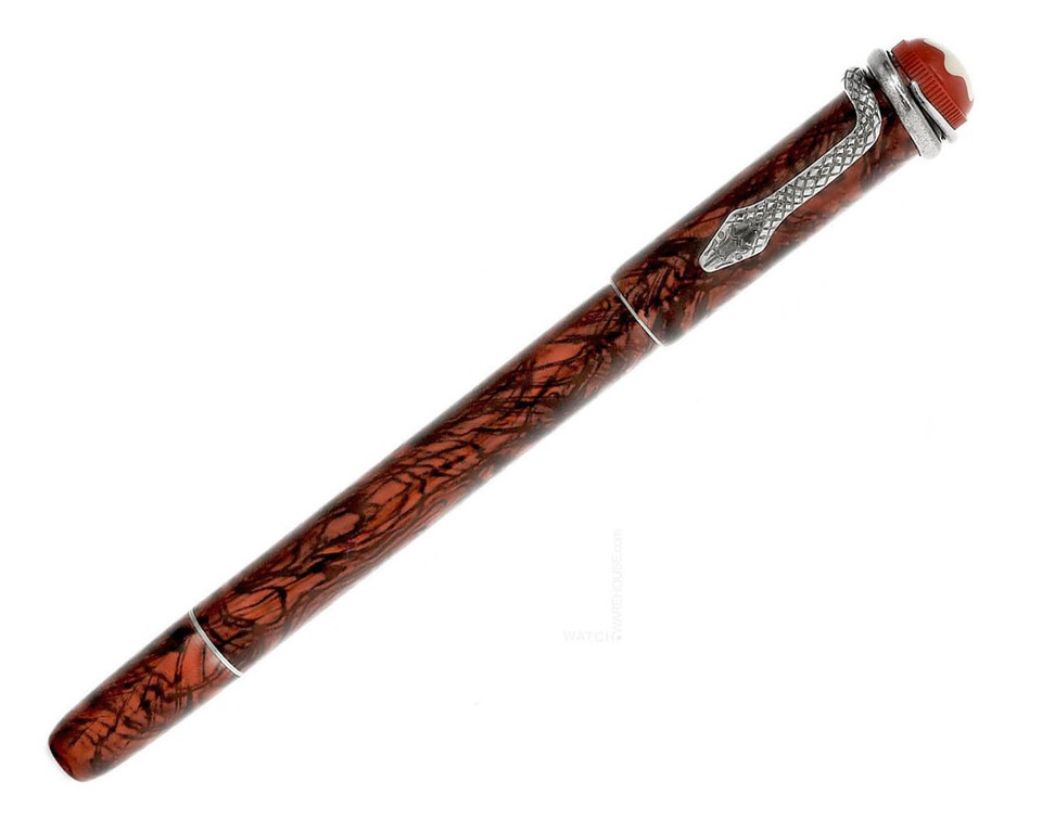 Als der "Rouge et Noir" Füllfederhalter 1906 entwickelt wurde. galt er als herausragende technische Errungenschaft. Er ließ sich einfach bedienen. ohne die Feder in ein Tintenfass tunken zu müssen. Die Heritage Collection Rouge et Noir würdigt den 110-jährigen Pioniergeist von Montblanc. Diese Neuauflage des legendären Schreibgeräts zeichnet sich durch eine längere und schlankere Silhouette und ein über Generationen verfeinertes Handwerk aus. Der schlangenförmige Clip im Vintage-Look mit den passenden Beschlägen wird in einem Präge- und Wickelverfahren erhalten. Er ist aus einer spezifischen Metalllegierung gefertigt. und ein einzigartiges Galvanisierungs- und Abbeizverfahren sorgt für eine optische Alterung.