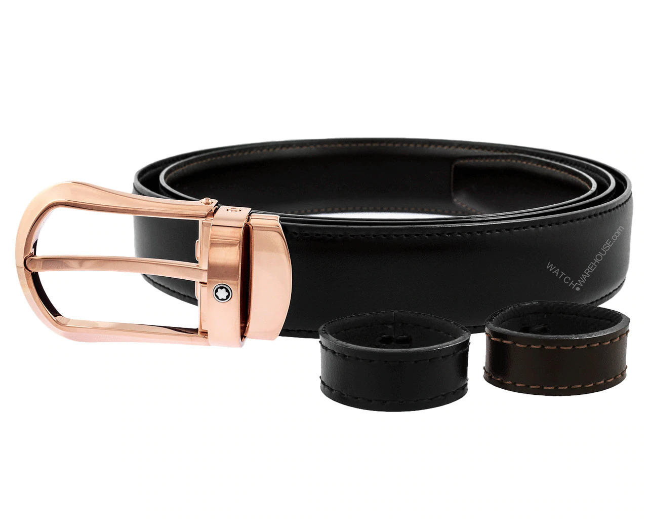 Produktinformationen "MONTBLANC S-Stahl Abgerundeter Glänzender Roségold Schwarzer Leder Gürtel "
