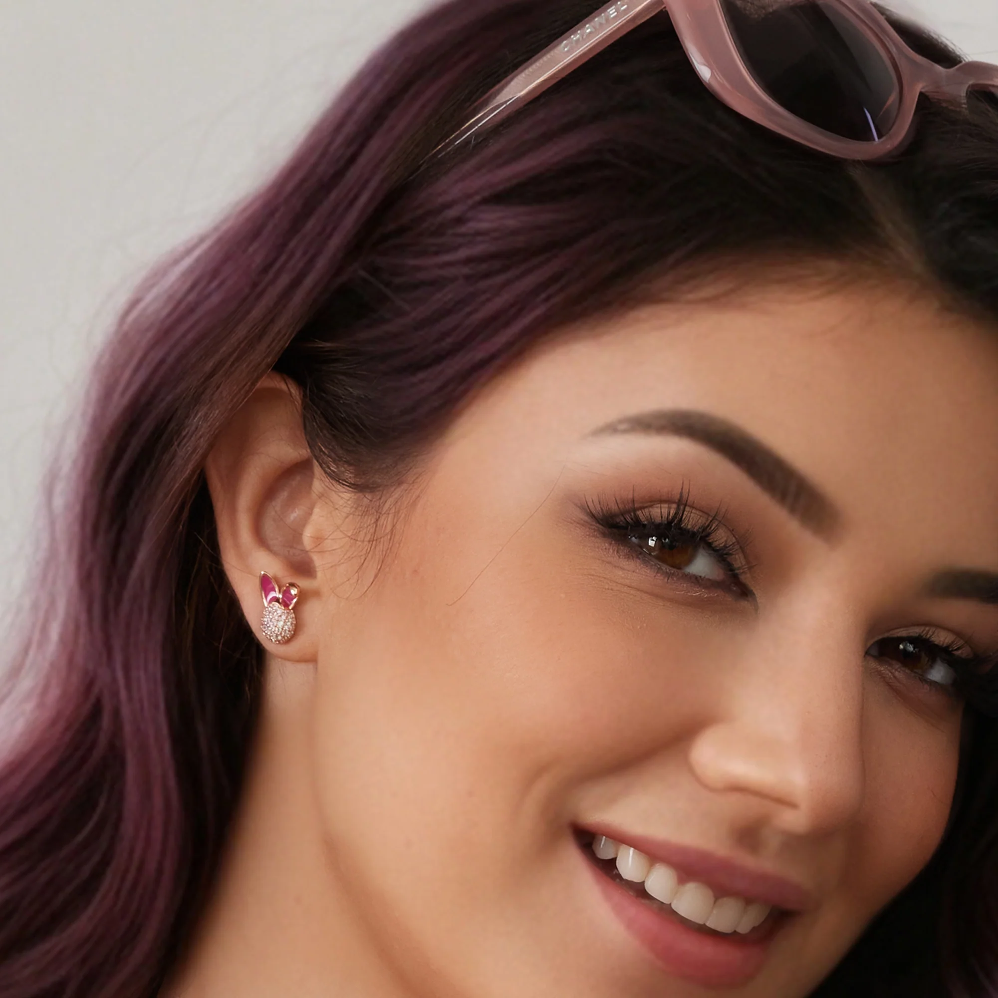 Die Miss Roxy Hasen Ohrringe sind eine charmante Kreation aus hochwertigem 925 Sterling Silber, kunstvoll veredelt mit einer 18K Rosévergoldung. In Form von stilvollen Eiern, die von verspielten Hasenohren gekrönt werden, verkörpern diese Ohrringe eine einzigartige Fusion aus Eleganz und Verspieltheit. Die kleine Größe verleiht ihnen eine zierliche Anmut, während die gewitzten Details den unverwechselbaren Charme von Miss Roxy unterstreichen. Diese Ohrringe sind nicht nur ein stilvolles Accessoire, sondern auch die ideale Ergänzung zum Miss Roxy Hasen Anhänger, um einen harmonischen Look zu kreieren. Lassen Sie sich von der niedlichen Eleganz dieser Ohrringe verzaubern und tragen Sie ein Stück der bezaubernden Miss Roxy Welt mit sich.