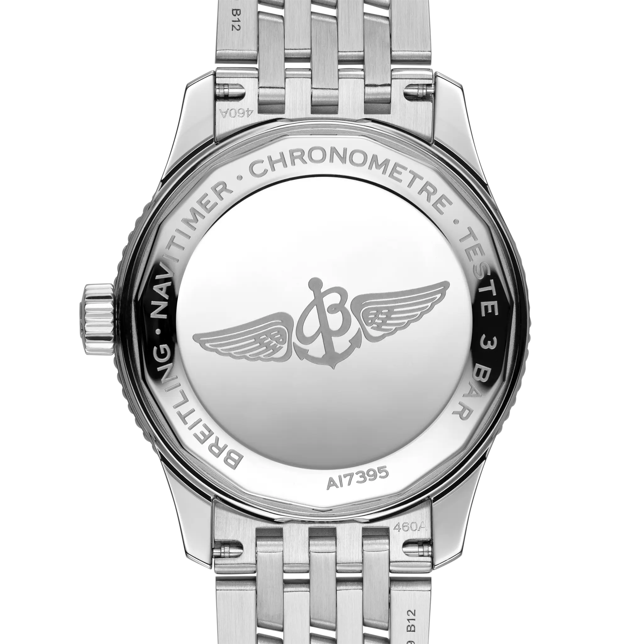 Die Breitling Navitimer Automatic 35 (Referenz A17395F41G1A1) ist eine elegante, schweizerische Automatik-Armbanduhr aus der berühmten Navitimer-Kollektion von Breitling. Sie kombiniert das klassische Design der ikonischen Navitimer-Serie mit zeitgenössischer Eleganz und tragbarer Größe.